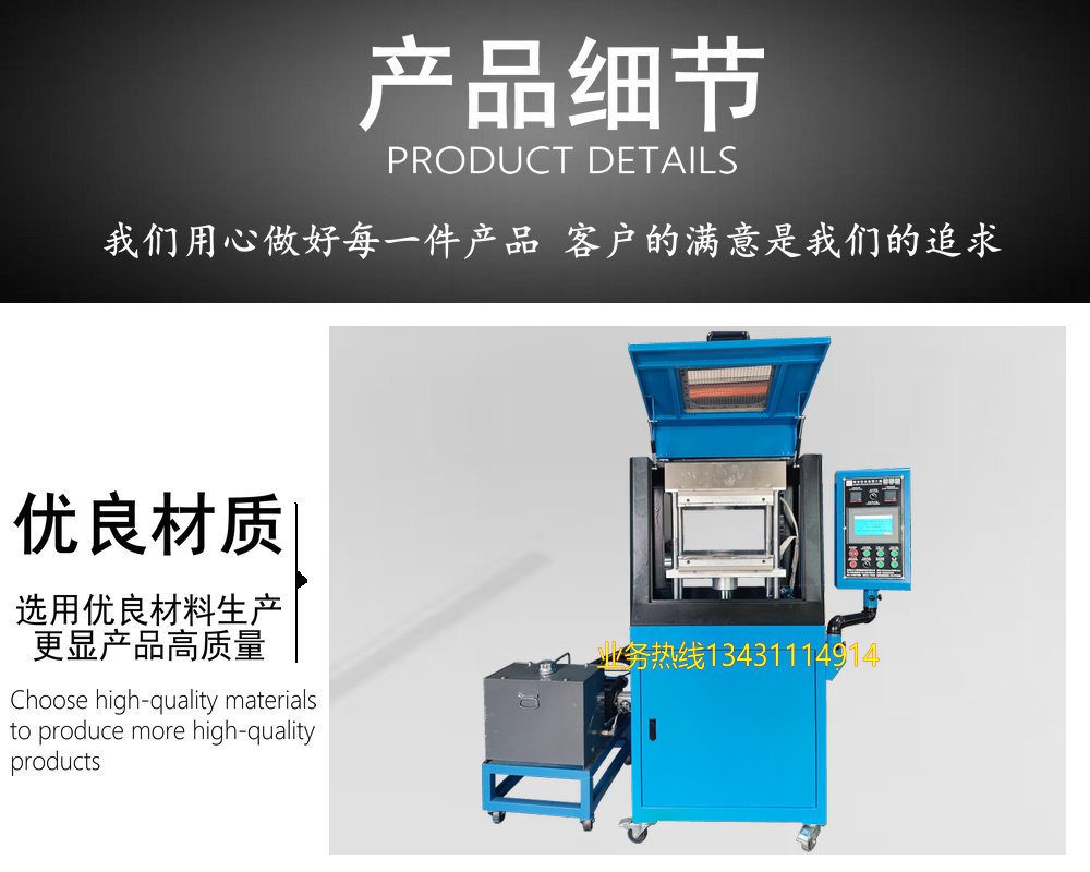 原料放于铸模内,夹于本机电热平板间加以压力及温度,使原料成型,以供试验,做为工厂大量生产配料之依据。