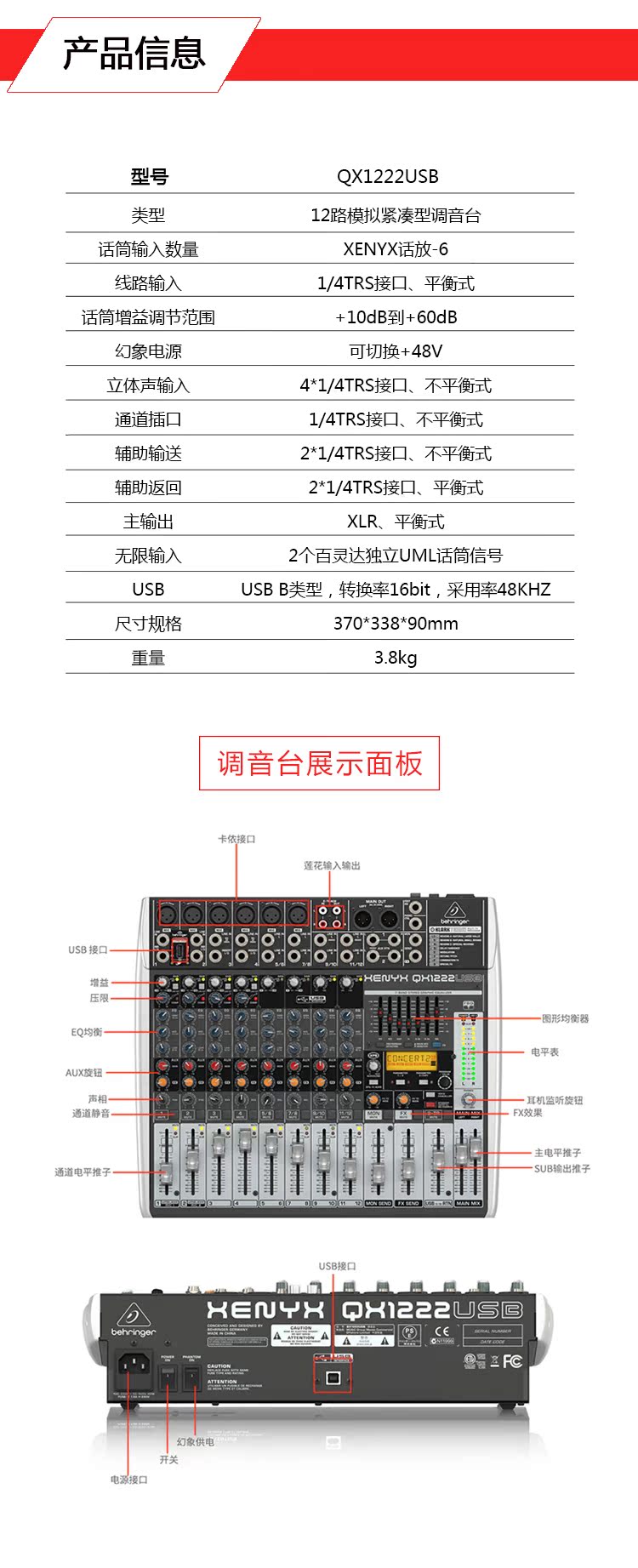 BEHRINGER QX1222USB 12路带USB模拟调音台 百灵达音响厂家相关商机