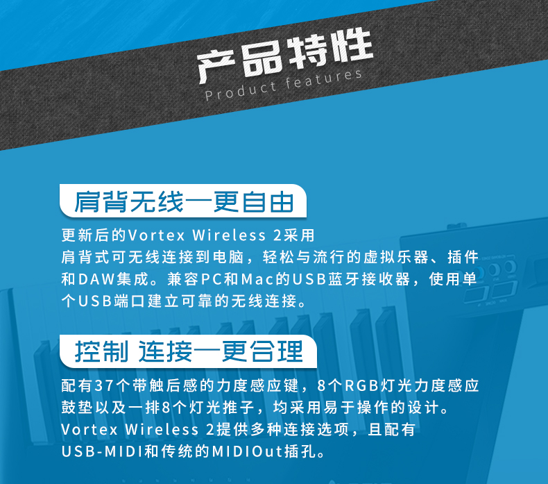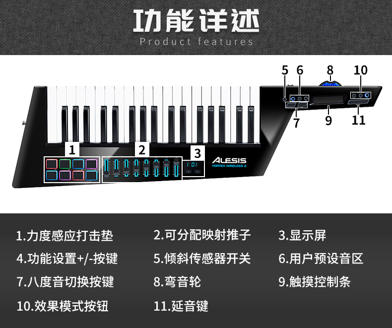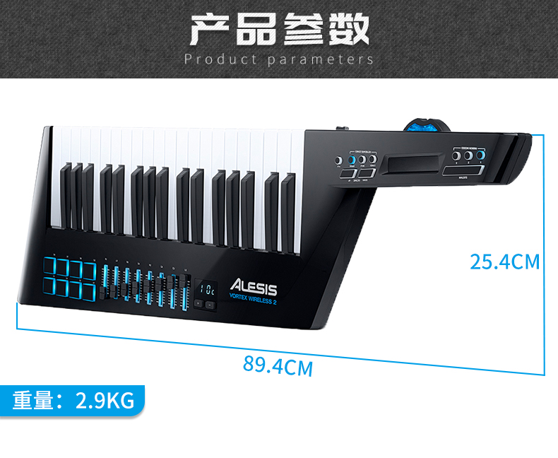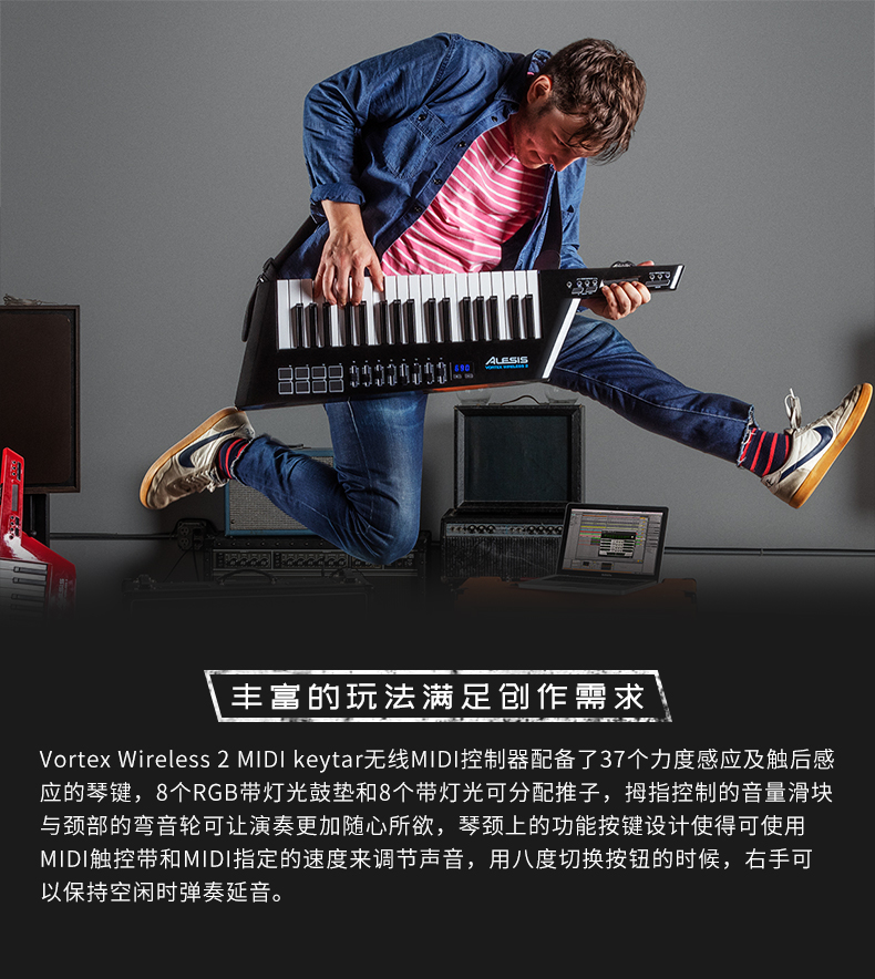 ALESIS爱丽丝Vortex Wireless(37键)肩背键盘MIDI控制器
