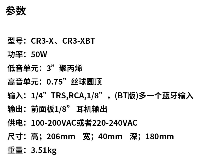 | 尺寸 | 206*40*180MM(cm) | 型号 | CR3-XBT |