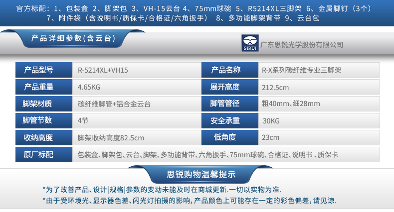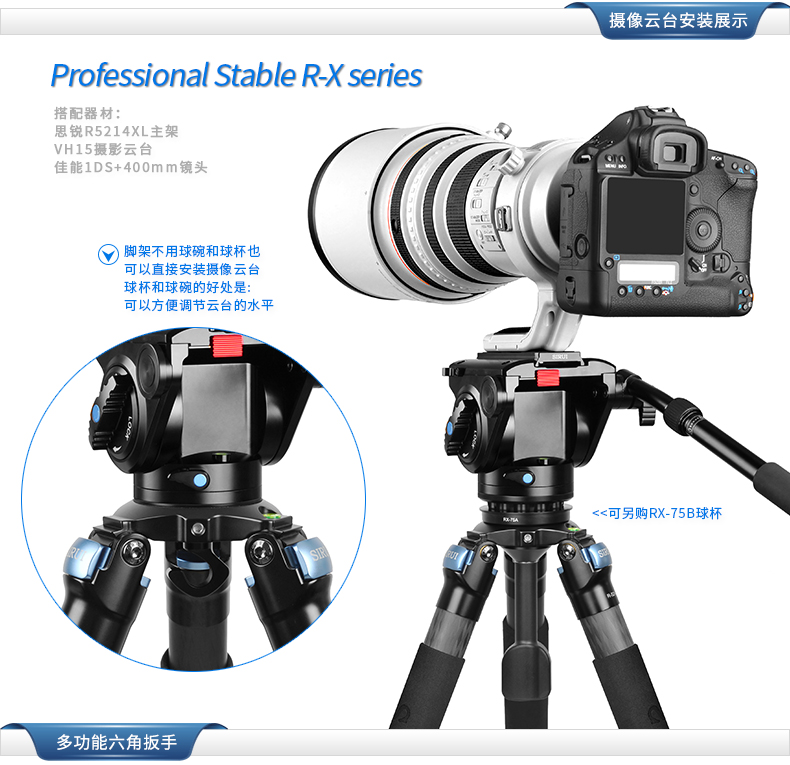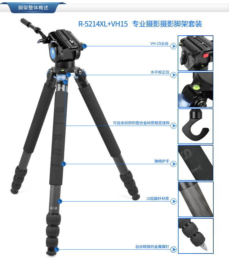 思锐碳纤维支架 R-5214XL+VH15 单反相机液压云台摄像机三脚架相关商机