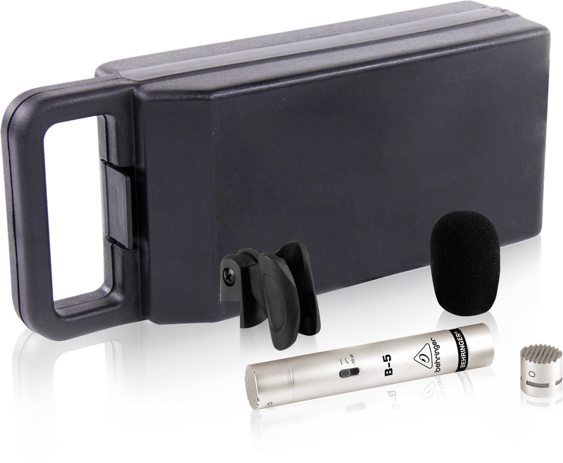 B-5 是一款专业级蒸金膜片录音电容麦克风,配有心型和圆型可替换的音头。它是原声乐器,人声和悬吊式拾音之尊。自身噪声极低,无输出变压器,配有场效应晶体管前置放大。 -10 dB 衰减适合高音源使使用,高通滤波能消除本地噪音。供货范围包括手提箱,麦克风脚架转接头和防风罩.